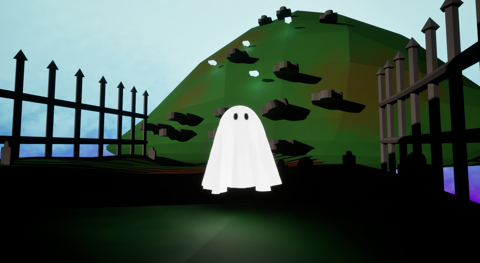 Help the little ghost reach the top of the hill {the mini version of the level is the end point} the bounce platforms can be invisible at some angles so try looking around a bit if your stuck